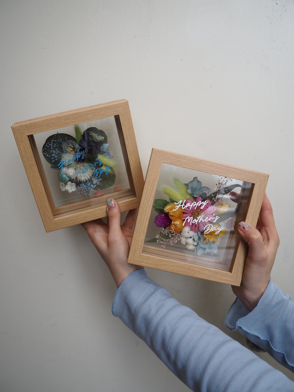 通常のドライフレームよりお花をボリューム良くデザインしているmother's day verです。
